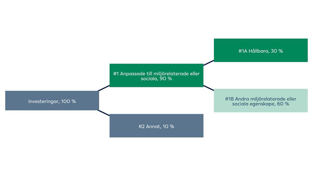 #2 Övriga omfattar övriga investeringar som gjorts inom den finansiella produkten, vilka inte motsvarar miljörelaterade eller sociala egenskaper och inte anses vara hållbara investeringar.